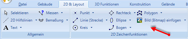 - Funktionsaufruf: Sie finden die benötigten Werkzeuge zum Zeichnen von 2D-Elementen unter