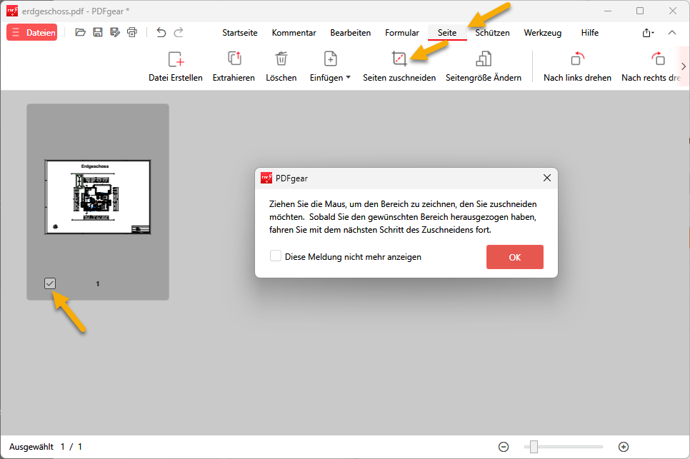 Seite zuschneiden, falls Sie nur einen bestimmten Bereich des Plans benötigen.