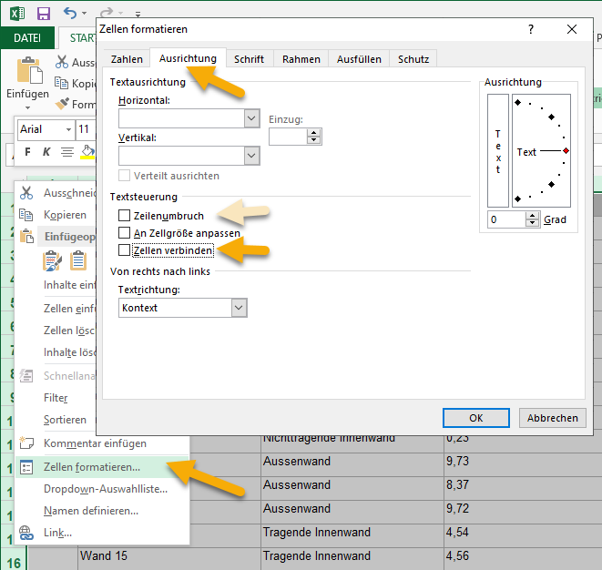 - Rechte Maustaste ⇾ Zellen Formatieren auswählen